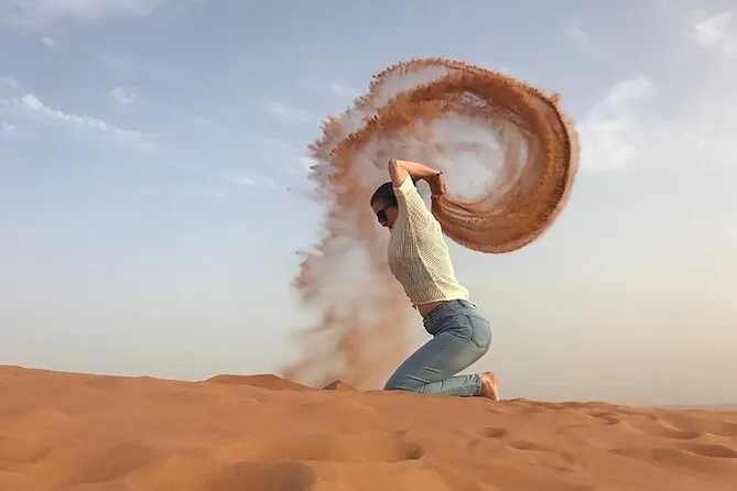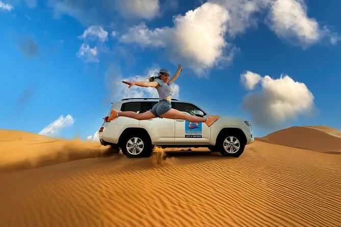 Vous vivrez dune bashing, balade à dos de chameau, sandboard, photos avec un faucon, et des rafraîchissements.