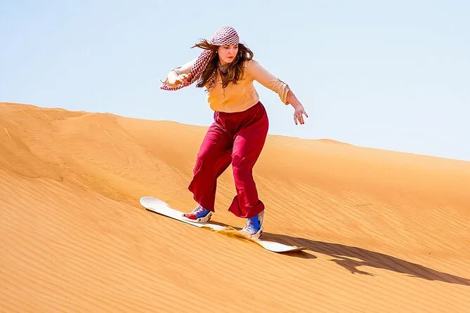 Vous ferez aussi du sandboard, une courte balade à dos de chameau, profiterez d’un spectacle vivant au camp bédouin et d’un dîner buffet BBQ.