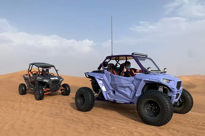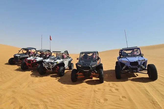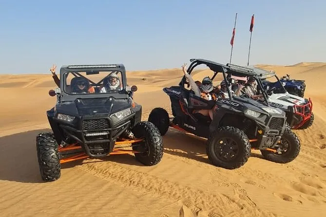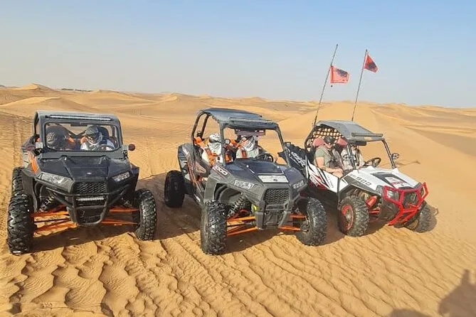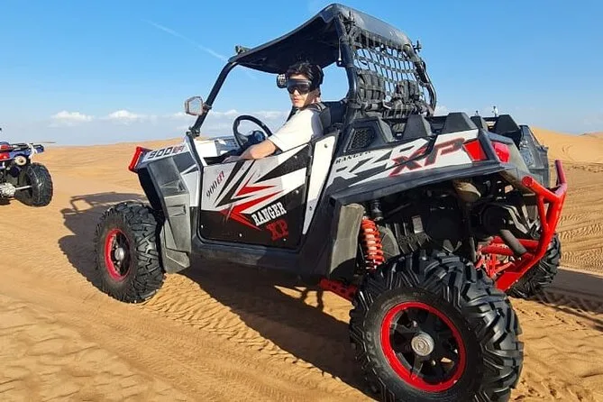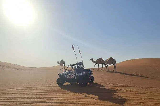 Votre matinée comprend une heure de conduite intense en buggy dans le désert sauvage de Dubaï avec toutes les consignes données par des guides locaux, un moment pour essayer le sandboard sur les célèbres dunes rouges (chutes acceptées), une balade tranquille à dos de chameau pour varier les plaisirs, ainsi que de l’eau en bouteille offerte tout au long de l’aventure pour profiter pleinement de chaque instant.