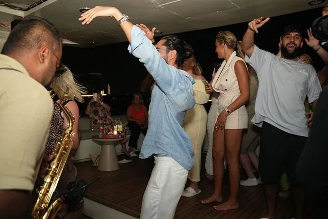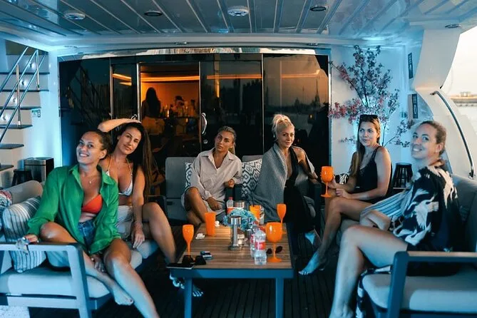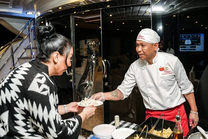 Votre soirée comprend une croisière de 3 heures en superyacht au départ de Dubai Harbour, avec boissons alcoolisées et non alcoolisées à volonté (jus, eau, sodas), un dîner barbecue et pâtes avec options gourmet, un DJ live pour danser ou se détendre sur le pont, des parties de Mario Kart à bord, le tout encadré par un équipage local sympathique avant le retour tardif à terre.