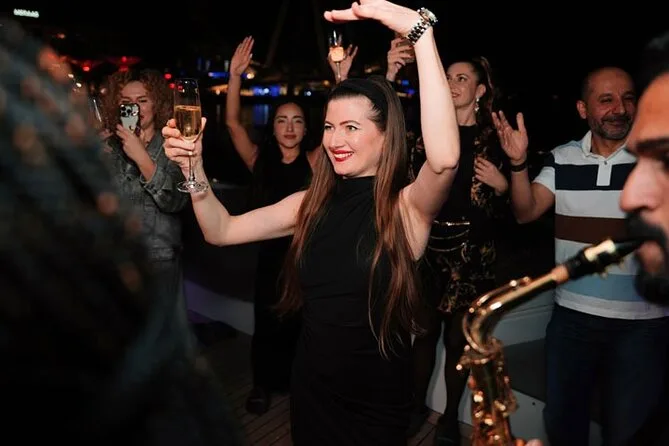 Nous avons longé Jumeirah Beach Residence — toutes ces lumières d’appartements qui scintillaient — puis cap vers Ain Dubai. C’est impressionnant de près, même si la grande roue ne tourne pas encore. Quelqu’un a pointé du doigt l’Atlantis au loin, mais honnêtement, mon moment préféré a été de m’appuyer un instant sur la rambarde, laissant la brise rafraîchir mon visage pendant que les autres dansaient ou discutaient derrière moi. Trois heures sont passées en un éclair ; à la fin, personne ne voulait encore descendre. C’est fou comme on peut se sentir chez soi sur un bateau rempli d’inconnus.