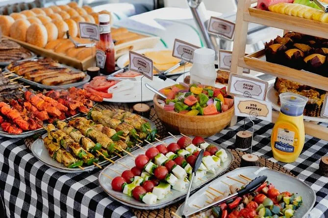 Le petit-déjeuner est servi lors des croisières matinales ; un BBQ en direct est proposé pour les croisières de l’après-midi ou au coucher du soleil.