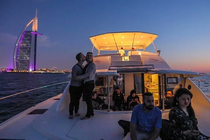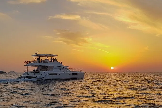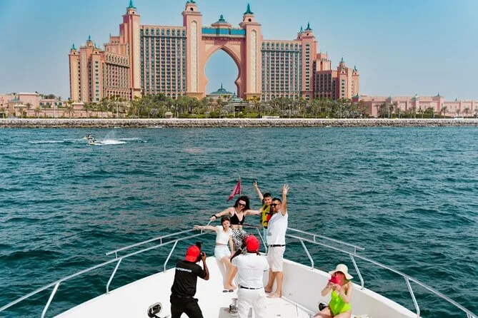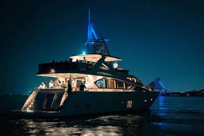Montez à bord d’un yacht partagé de luxe à Dubai Marina (chaussettes ou pieds nus !), naviguez devant Bluewaters Island, Palm Jumeirah, Atlantis et Burj Al Arab tout en profitant d’un petit-déjeuner ou d’un BBQ en direct sur le pont. Boissons fraîches incluses, équipage local détendu, et vues inédites sur les icônes de Dubai — avec un peu de chance, vous verrez même des parachutistes au-dessus.