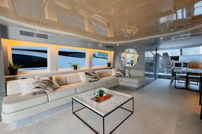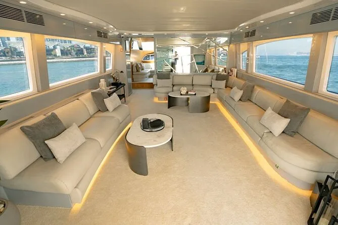 J’ai failli rater la rampe d’accès au quai — apparemment, « à côté du pont » c’est plus une impression qu’un panneau. Je me suis retrouvé à cligner des yeux sous le soleil, mon passeport en main (oui, ils vérifient vraiment), me demandant si je n’avais pas mal compris les instructions. Puis un membre de l’équipage m’a fait signe avec un sourire : « Vous êtes là pour la croisière en yacht à Dubai Marina ? » comme si c’était un rituel quotidien — ce qui, je suppose, l’est. L’air à l’intérieur du salon était frais et sentait légèrement le café à la cardamome, un vrai soulagement après cette balade collante depuis le taxi.