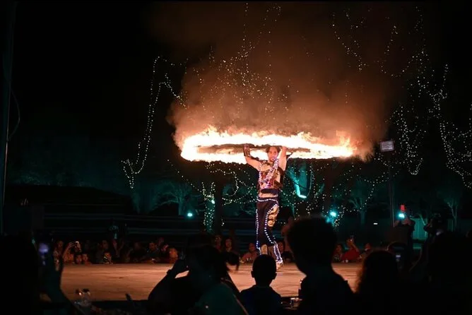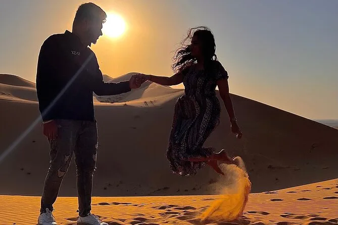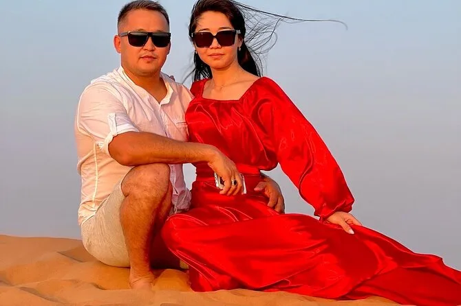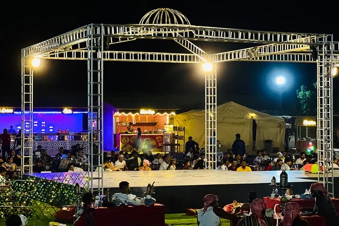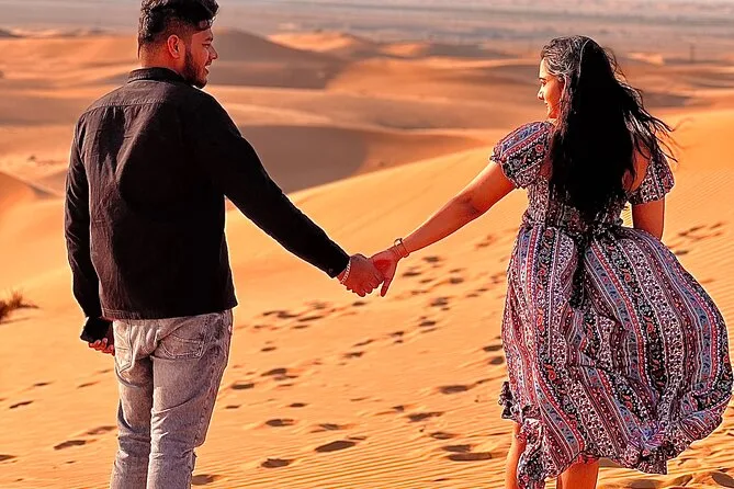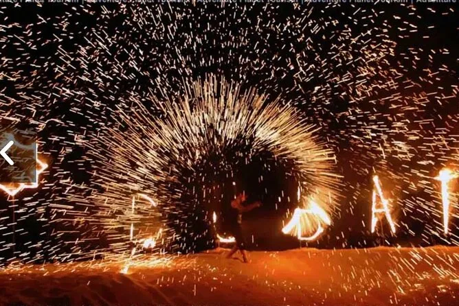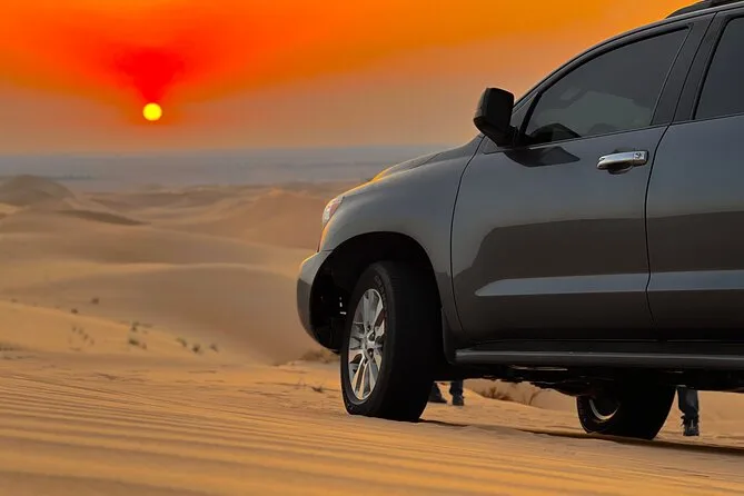 Votre excursion comprend un transport privé en 4x4 depuis votre hôtel ou domicile à Dubaï, toutes les activités de dune bashing (balade à dos de chameau, sandboard), boissons soft illimitées et thé/café au camp, peinture au henné, spectacles vivants (danse du ventre, tanoura, zumba, feu), ainsi qu’un dîner BBQ complet avec options végétariennes et non-végétariennes.