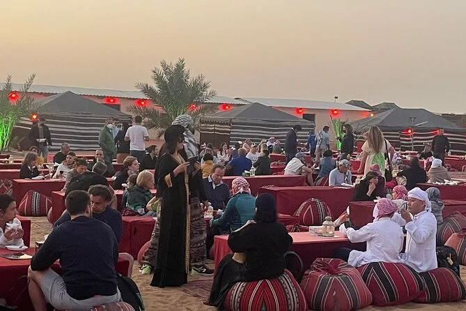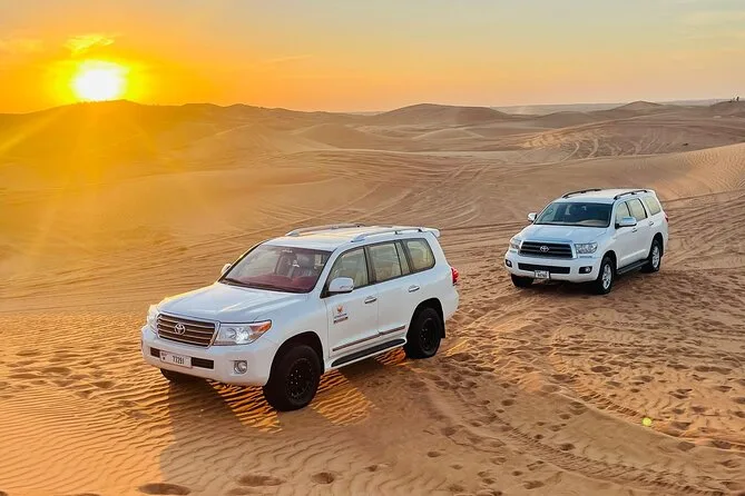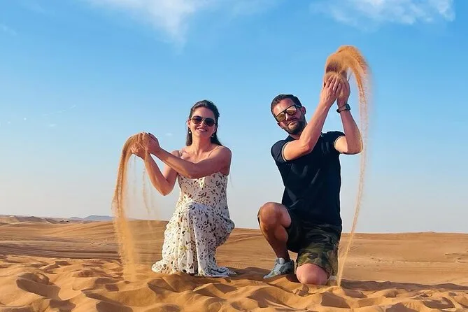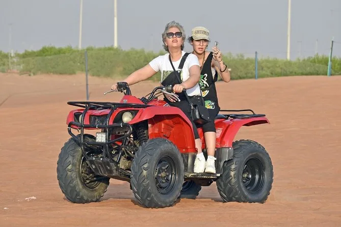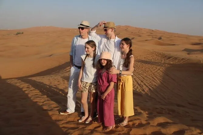Prise en charge et retour à l’hôtel en 4x4 climatisé, eau et boissons non alcoolisées à volonté, balade en quad avec casque, promenade à dos de chameau, sandboard, vues au coucher du soleil, photo avec faucon, dîner BBQ (végétarien et non-végétarien), thé/café/gawa/gaymat, spectacles live (danse orientale, tanoura, feu), tatouages au henné, coin photo en tenue arabe et accès au salon chicha.