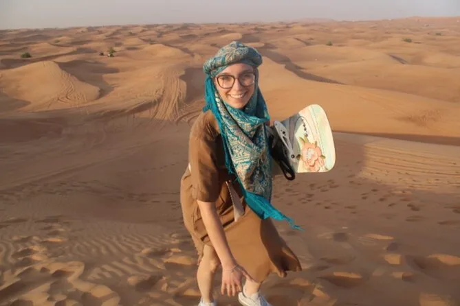 Après la balade, on a fait un arrêt dans une ferme de chameaux. Ils avaient l’air presque blasés, mais un d’eux a frotté son museau contre ma main quand je lui ai tendu un brin d’herbe. Le soleil commençait à descendre, baignant le désert de teintes dorées et orangées. Ce moment suspendu où on n’entend que le doux bruit des sabots et des rires au loin. Plus tard, on a testé le sandboard — je suis tombé plusieurs fois, mais j’ai ri sans m’arrêter.
