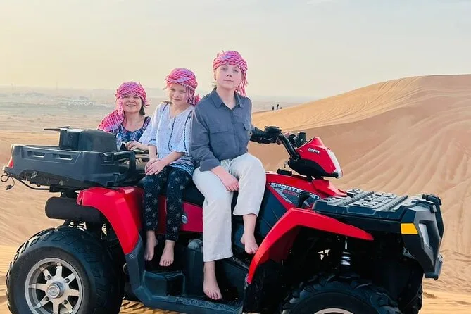 Envie d’une vraie aventure à Dubaï ? Profitez d’une balade en quad sur les dunes rouges, d’une promenade à dos de chameau au coucher du soleil, du sandboard et d’un dîner BBQ animé avec spectacle local — tout ça en une soirée.