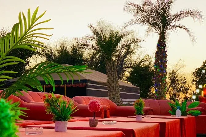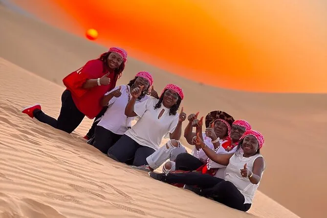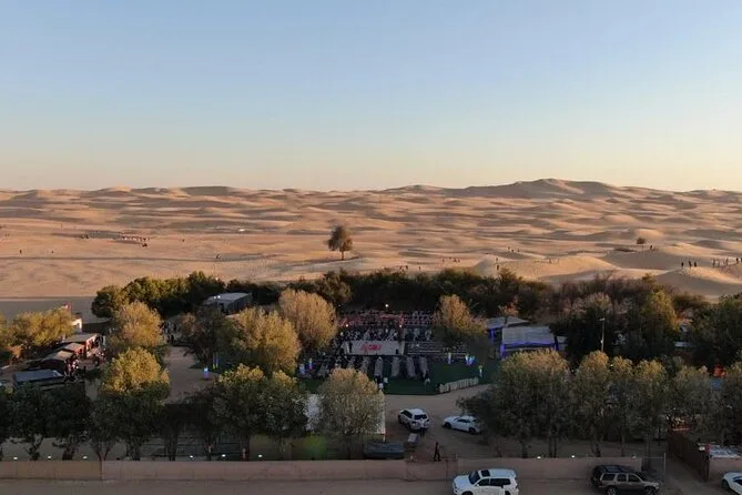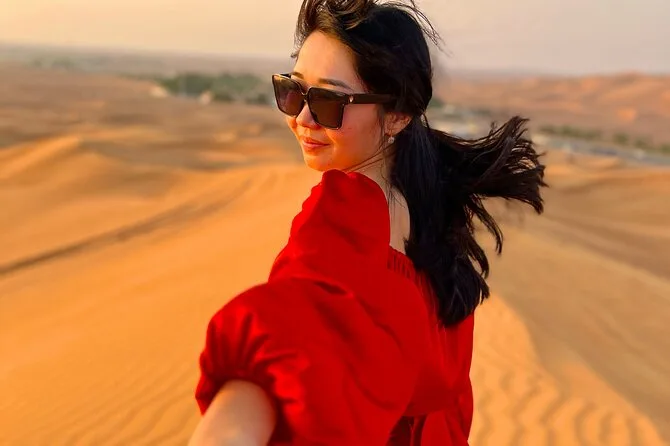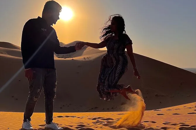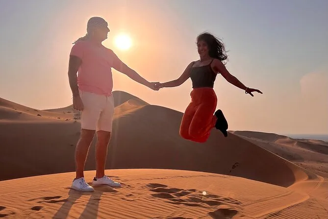 Votre trajet privé en 4x4 est inclus, ainsi que tous les transferts. Le dîner propose des options végétariennes et non-végétariennes, avec café ou thé au camp. Apportez juste votre esprit d’aventure — et peut-être un foulard contre le sable !