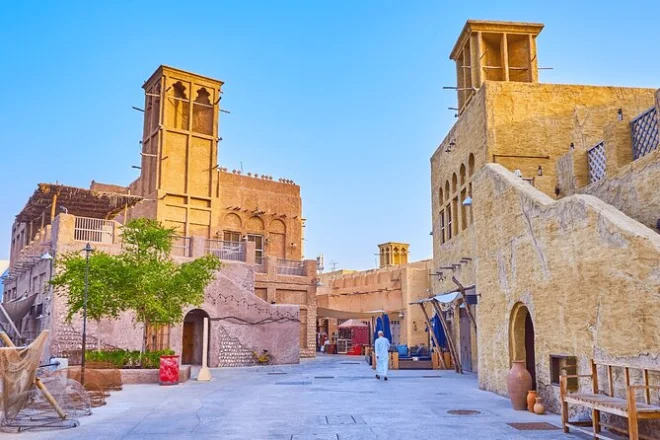Le quartier Bastakiya, c’est comme un saut dans le temps. Ruelles étroites à l’ombre des tours à vent, petits cafés d’art nichés entre maisons couleur sable. Notre guide nous a montré une vieille maison où l’on sert encore du thé à la cardamome — l’odeur flottait dans l’air du passage.