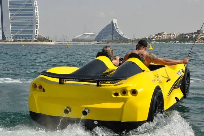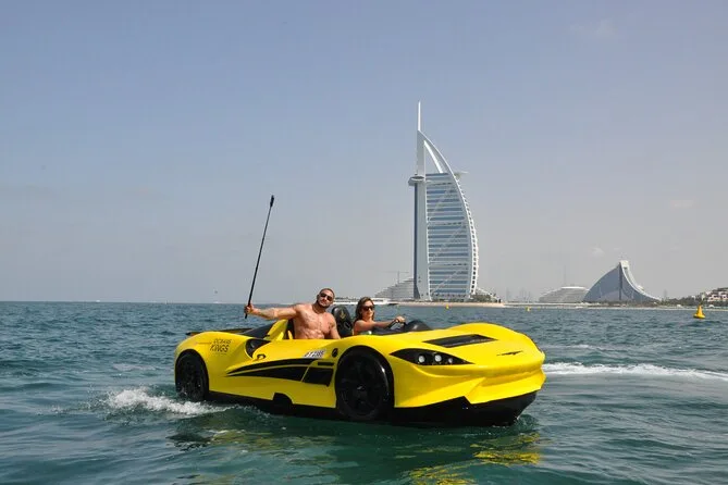 Montez à bord d’un jet car et admirez les symboles de Dubai depuis l’eau — Burj Al Arab, Palm Jumeirah, Atlantis. Rapide, fun, et parfait pour des photos de vacances qui en jettent vraiment.