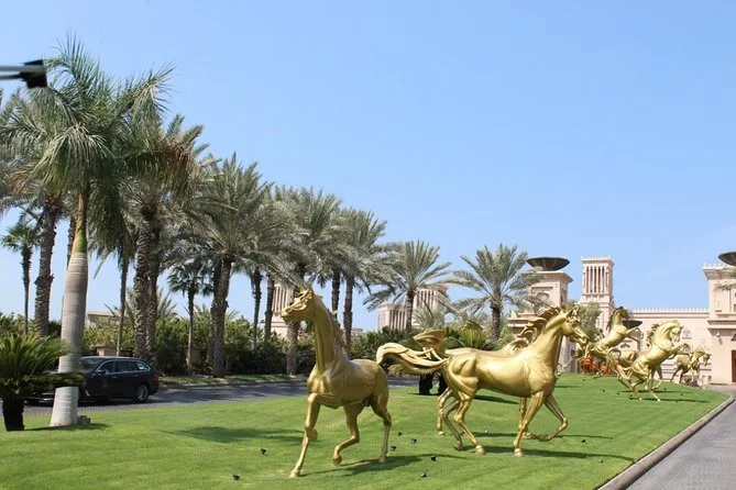 Ensuite, on s’est arrêtés à la mosquée Jumeirah. Franchement, je ne pensais pas être aussi touché par le calme qui règne là-bas — même avec les gens qui prenaient des photos dehors. La pierre blanche semblait presque briller sous le soleil du matin, et on entendait au loin le bruit de la circulation, mêlé à un murmure de prières à l’intérieur. Puis on a roulé le long de la plage ; l’air salé se mêlait aux gaz d’échappement (pas très romantique, mais authentique). Le Burj Al Arab est apparu soudain à l’horizon — c’est un de ces bâtiments qui paraît irréel jusqu’à ce qu’on soit juste en dessous.