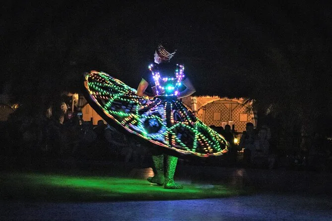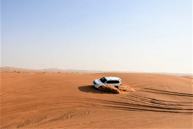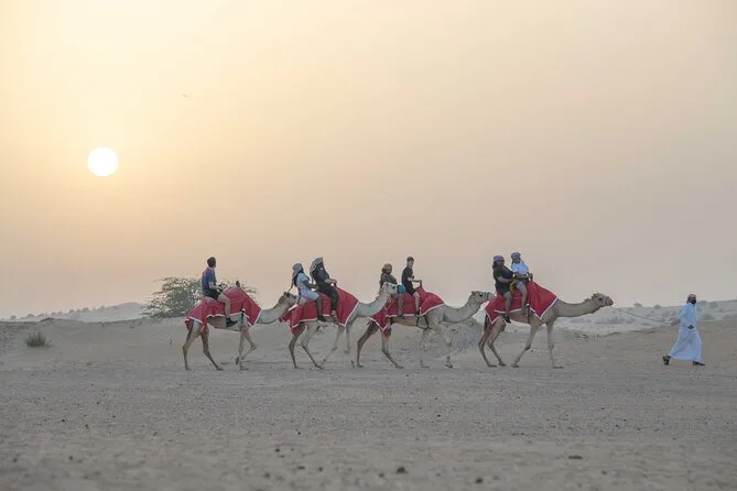 Votre journée comprend la prise en charge à l’hôtel partout à Dubaï en 4x4 Land Cruiser climatisé ; 30 minutes de quad en autonomie (sans permis) ; jusqu’à 45 minutes de dune bashing ; sandboard ; balade à dos de chameau au coucher du soleil ; photos avec un faucon ; boissons soft illimitées, café et thé ; henné réalisé par des professionnels ; chicha ; dîner buffet BBQ avec choix végétariens et non-végétariens ; spectacles de danse orientale, Tanoura et feu — le tout avant le retour à votre hôtel en fin de soirée.