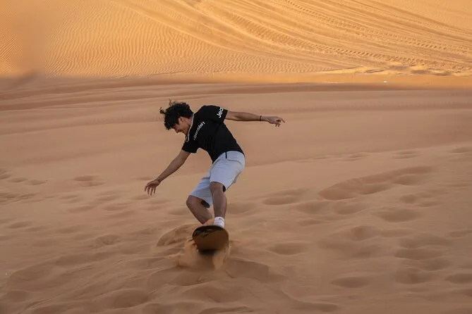 Partez à l’assaut des dunes rouges de Dubaï en quad avec un guide local, testez le sandboard (les chutes font partie du jeu), rencontrez chameaux et faucons au coucher du soleil, puis détendez-vous dans un camp bédouin autour d’un dîner BBQ avec spectacles vivants. Rires, silence du désert, nouvelles saveurs — et sûrement du sable dans vos chaussures au retour.