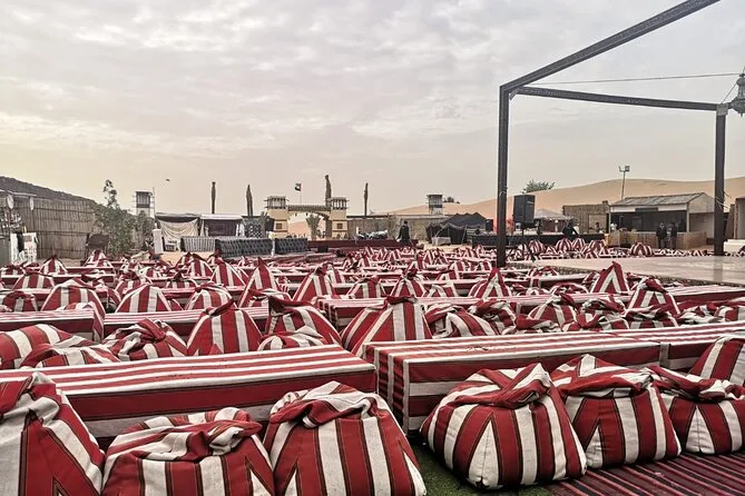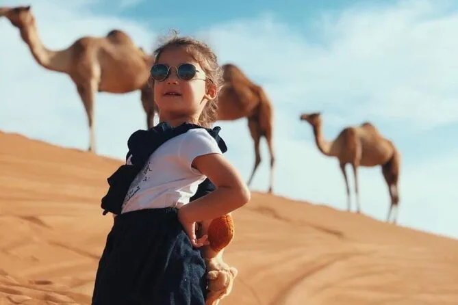 Votre journée comprend la prise en charge et le retour en 4x4 climatisé depuis votre hôtel ou lieu choisi à Dubaï ; une session de dune bashing dans le désert rouge de Lehbab ; la possibilité d’essayer le sandboard ; une courte balade à dos de chameau pour les photos ; des fruits frais comme pomme et pastèque ; eau, thé, café et boissons sans alcool à volonté ; tatouages au henné ; tenue arabe pour les photos ; un buffet international avec dîner BBQ (options végétariennes disponibles) ; ainsi que des spectacles live de danse orientale, tanoura et feu avant le retour à votre hôtel en soirée.