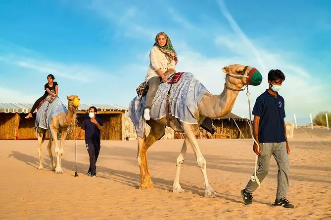Vivez l’excitation du dune bashing dans le désert rouge de Dubaï avant de vous détendre dans un camp chaleureux avec balade à dos de chameau, henné et café arabe fort. Savourez un dîner BBQ fumé pendant que les danseurs illuminent la nuit — et terminez sous un ciel étoilé avec transfert hôtel inclus.