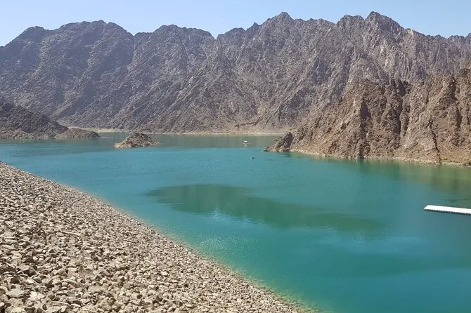 On s’est baladés dans des ruelles étroites où le vent portait un léger parfum d’herbes séchées et de poussière. À un moment, notre guide nous a arrêtés près d’une vieille tour de guet et a raconté comment les familles s’y rassemblaient pendant les tempêtes. J’ai presque pu l’imaginer — tout le monde serré les uns contre les autres pendant que la pluie tambourinait sur le toit. Ensuite, on a pris la route vers le barrage de Hatta. L’eau avait cette couleur bleu-vert étrange, contrastant avec les rochers bruns. Certains faisaient du kayak (j’aurais bien aimé avoir mes shorts), mais surtout, c’était le calme, à part les oiseaux et quelques éclaboussures qui résonnaient sur les falaises.