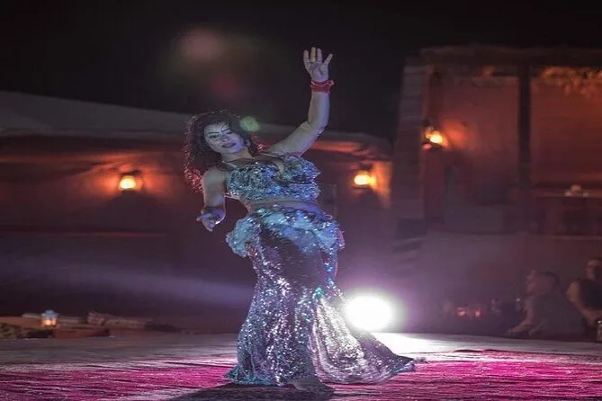Votre visite inclut la prise en charge et le retour depuis des points centraux à Dubaï, un transport climatisé, tout le plaisir du dune bashing, du sandboard si vous le souhaitez, une courte balade à dos de chameau, la peinture au henné, des boissons non alcoolisées et de l’eau à volonté, ainsi qu’un dîner buffet BBQ. Vous assisterez aussi à des spectacles vivants de danse orientale, de Tanura, de feu et de musique arabe — tout est compris.