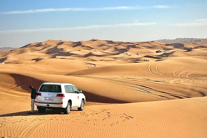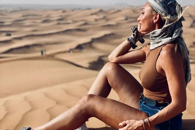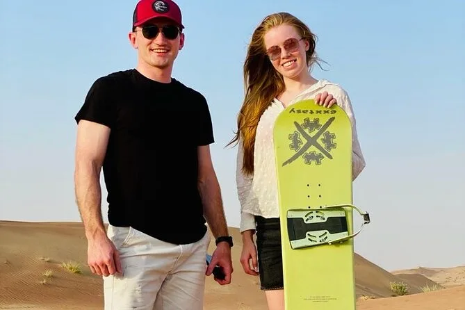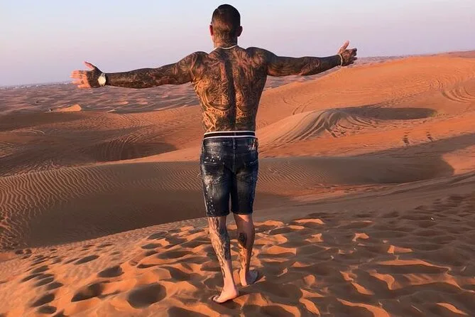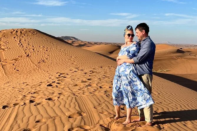 Vous chevaucherez des chameaux dans la réserve naturelle du désert de Dubaï, testerez le sandboard au coucher du soleil, partagerez un dîner traditionnel sous des lanternes, et assisterez à des danses locales avec votre guide privé à vos côtés — des souvenirs du désert qui resteront gravés longtemps après votre retour.