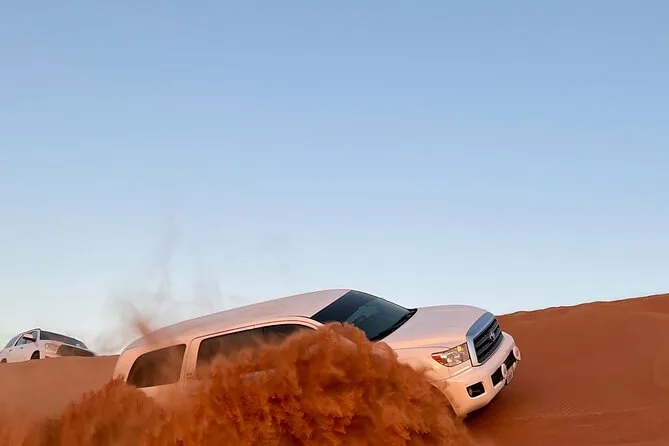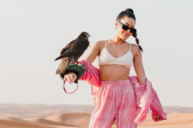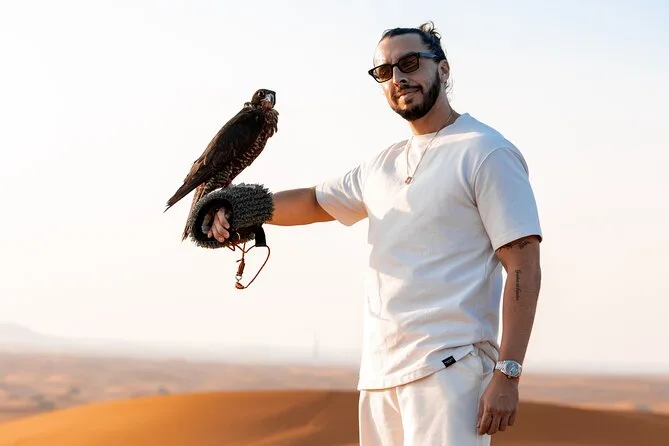 Le tour comprend dune bashing, sandboard, balade courte à dos de chameau pour photos, spectacles en live (danse orientale, feu, danse Tanura), tatouage au henné pour les femmes, chicha, photo avec un faucon, snacks et boissons, ainsi qu’un dîner BBQ buffet.