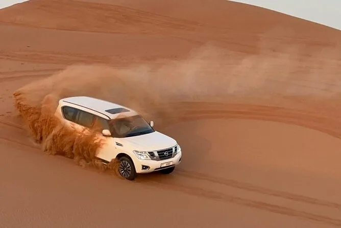 Votre soirée commence par un transfert en 4x4 depuis Dubaï avant 30 minutes de dune bashing sur les dunes rouges. Au camp, vous profiterez de balades à dos de chameau, de sandboard si vous le souhaitez, de trois spectacles en live (danse orientale, danse tanoura et feu), ainsi que d’un café ou thé arabe à volonté avec du lait. La peinture au henné est aussi proposée. Le dîner est un buffet complet avec salades, pain, plats de riz et viandes BBQ, accompagné d’eau ou de boissons fraîches — et vous pourrez essayer la shisha avant de repartir en ville plus tard dans la soirée.