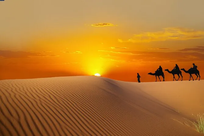 Vivez une soirée magique à travers les dunes dorées à dos de chameau, essayez le sandboard au coucher du soleil, et savourez un dîner BBQ avec danse orientale sous les étoiles. Découvrez le henné et la chicha dans un camp bédouin animé — une parenthèse loin de la ville.
