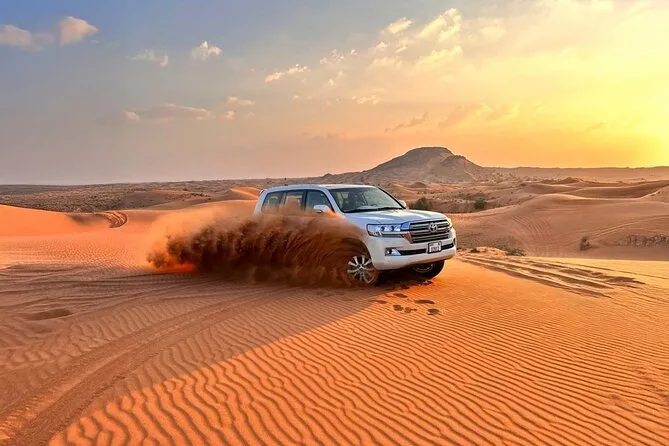 Votre soirée commence par une prise en charge pratique à votre hôtel à Dubaï en 4x4, direction le désert de Lahbab où vous aurez le temps de rouler en quad sur de hautes dunes avant de tester le dune bashing et le sandboard. Au camp, vous serez accueillis avec des douceurs arabes et des fruits ; vous pourrez faire une balade à dos de chameau ou vous faire tatouer au henné avant de profiter d’un dîner buffet BBQ complet avec salades et plats arabes, le tout accompagné de spectacles vivants — puis retour confortable à votre hôtel une fois la soirée terminée.