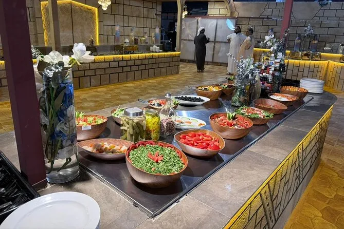 Vous pouvez faire une balade à dos de chameau, vous faire tatouer au henné, vous habiller en tenue traditionnelle pour les photos, interagir avec un faucon, profiter de la chicha, regarder les spectacles en live et dîner.