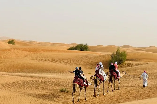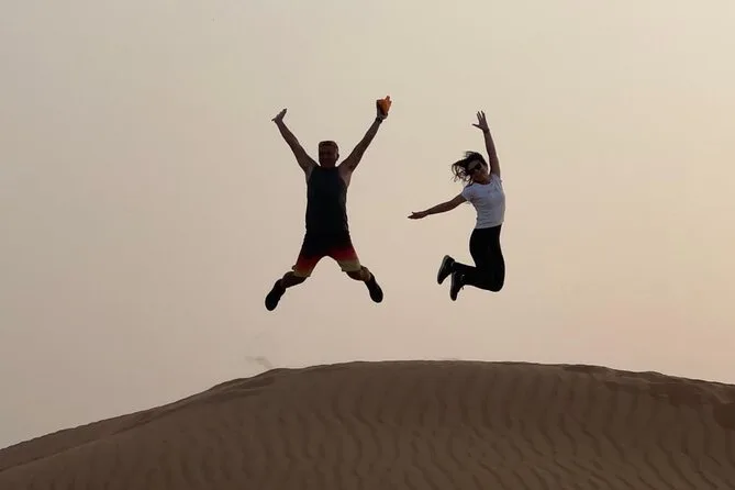 Vous serez pris en charge dans un 4x4 climatisé depuis votre hôtel ou point de rendez-vous. Dune bashing (30-45 min), sandboard, balades à dos de chameau, peinture au henné, dégustation de chicha, photos avec faucon—tout est inclus. Sans oublier les spectacles en live (danse tanoura, danse du ventre, spectacle de feu) et un buffet BBQ complet avec café et thé arabes.