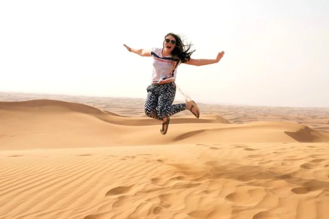 Je dois avouer que j’étais un peu nerveux en quittant la ville — vous connaissez ce moment où la skyline disparaît soudainement et il ne reste plus que l’immensité ? Notre chauffeur, Ahmed, avait cette manière tranquille de raconter son enfance à Sharjah tout en manœuvrant dans la circulation. La climatisation dans le van était un vrai soulagement (les matins à Dubaï peuvent déjà ressembler à midi), mais je n’arrêtais pas de regarder les couleurs changer dehors. Quand on est enfin arrivés dans le désert de Lahbab, c’était bien plus calme que ce à quoi je m’attendais — juste le vent et ce doux craquement sous mes chaussures en posant le pied sur le sable rouge.