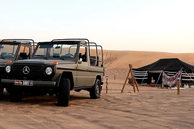 Approchez-vous de la vie désertique de Dubaï lors de ce safari privé matinal — voyagez en Mercedes G-Class vintage, rencontrez des Bédouins, observez la faune et savourez un petit-déjeuner sous le ciel ouvert. Ce n’est pas qu’une visite, c’est une immersion authentique dans la culture locale et la nature.