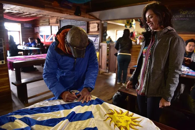 La montée jusqu’au refuge José Rivas (près de 4900 mètres !) a été lente pour moi — je sentais mes poumons à bout de souffle. On s’arrêtait souvent ; Diego nous montrait de petites fleurs violettes qui poussaient entre les pierres et expliquait comment les locaux les utilisent pour faire du thé. À un moment, je suis resté là, juste à écouter : rien d’autre que le vent et ma respiration. Là-haut, c’est étonnamment silencieux, sauf quand quelqu’un rit ou tousse. Quelques personnes sont montées plus haut vers le glacier (5000 mètres), mais honnêtement, j’étais déjà content d’atteindre le refuge. L’air à l’intérieur sentait la soupe et les vestes humides.
