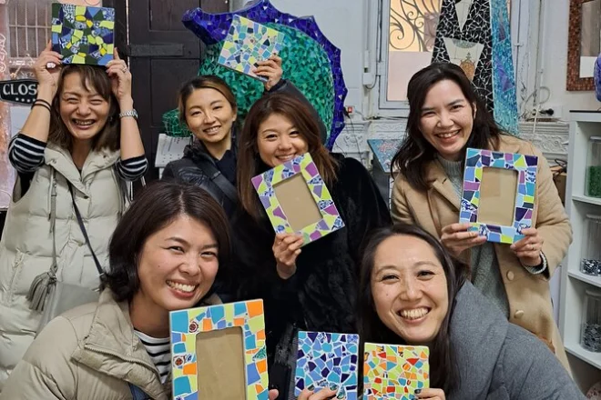 Plongez dans un atelier lumineux au cœur de Barcelone et apprenez la célèbre technique du trencadís de Gaudí avec une artisane locale primée. Choisissez votre projet — salamandre ou cadre photo — et laissez libre cours à votre créativité avec des carreaux colorés et un accompagnement chaleureux. Pas besoin d’expérience, juste de la curiosité et de bonnes mains. Repartez avec un souvenir unique fait main (après jointoiement) et des souvenirs qui durent bien plus longtemps que la colle.