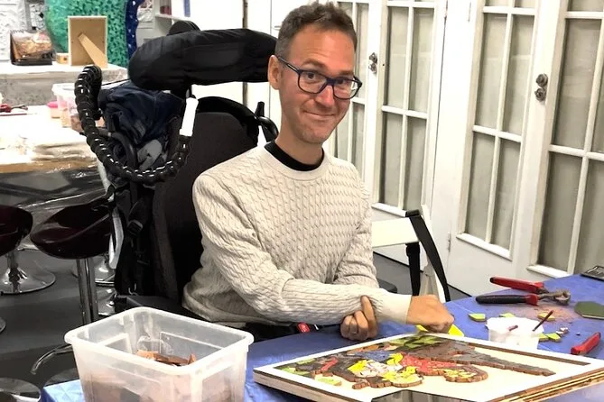 Votre expérience inclut un atelier mosaïque pratique avec choix entre carreaux en céramique ou en verre, tous les outils et matériaux fournis, un accompagnement chaleureux par une artisane locale experte, ainsi qu’une aide pour le jointoiement de votre création afin que vous puissiez la récupérer plus tard — pas besoin d’expérience et accessible à tous.