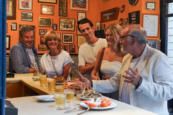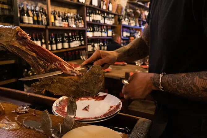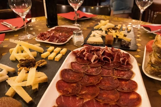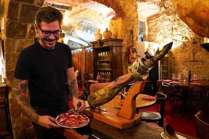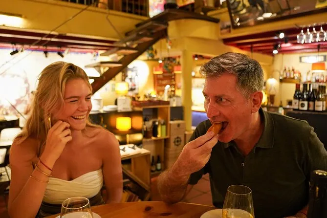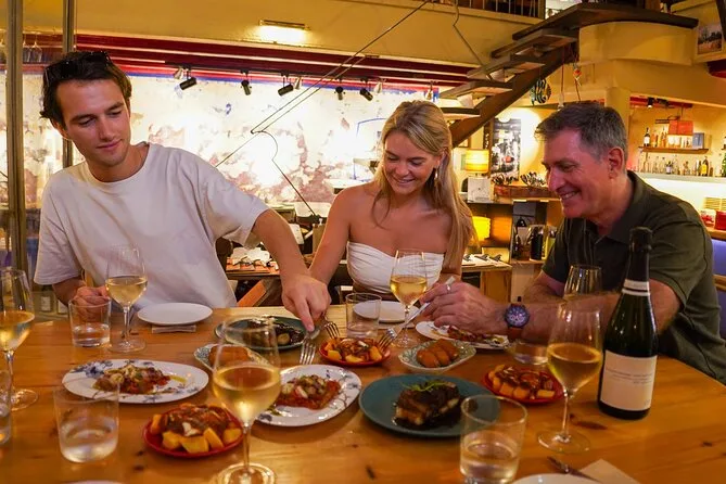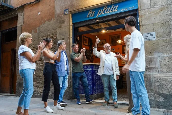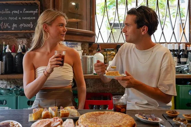 Partez à la découverte d’El Born et du quartier gothique de Barcelone en petit groupe, dégustez des tapas classiques comme le jambon ibérique, fromages, pimientos de padrón et patatas bravas dans quatre bars différents. Un guide local partage anecdotes et histoires pendant que vous savourez des vins régionaux — de quoi faire un vrai repas. Rires, rencontres et saveurs catalanes au rendez-vous.