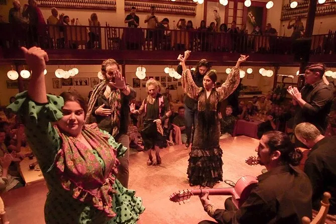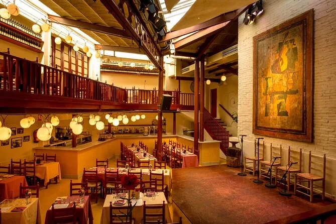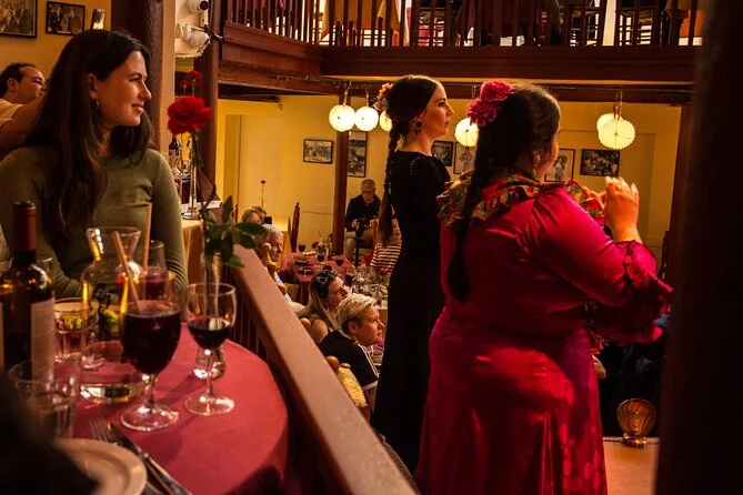À l’intérieur, c’est tamisé mais chaleureux, un peu comme le salon de quelqu’un dont la famille joue de la guitare pour vivre. Notre serveuse, Marta, nous a demandé si on voulait le menu dégustation ou le dîner — elle a souri quand j’ai essayé de commander en espagnol (j’ai encore honte de mon accent). Le repas est arrivé doucement : olives salées, un plat au safran dont je n’ai pas retenu le nom, un vin plus corsé que ce que j’ai l’habitude de boire. Puis les lumières se sont éteintes et soudain, une voix est apparue — brute, puissante et magnifique — résonnant sur les vieilles poutres en bois. Les danseurs tapaient si fort qu’on le sentait jusque dans la chaise. À un moment, je me suis surpris à retenir mon souffle.