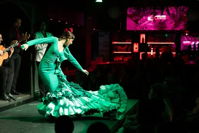 Votre soirée comprend l’entrée à El Duende by Tablao Cordobes, en plein cœur de La Rambla à Barcelone, ainsi qu’une boisson par personne—sangria, vin, bière ou soda. Des boissons supplémentaires sont disponibles à l’achat sur place.