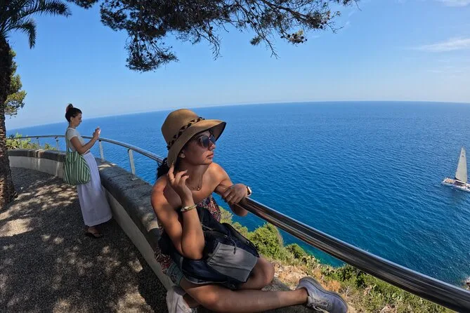 On a commencé à marcher sur ce vieux sentier côtier, serpentant à travers des forêts de pins d’un vert presque trop intense pour la fin du printemps. Parfois, on débouchait sur une promenade où des familles mangeaient des glaces ou des vieux jouaient aux cartes sous des parasols rayés. Marc nous a raconté les histoires de contrebandiers qui empruntaient ces chemins il y a longtemps — il laissait entendre qu’ils se cachaient peut-être encore derrière un de ces murs en pierre. C’était un parcours en montée et descente, jamais trop dur, mais juste assez pour être content d’avoir pris un bon petit-déjeuner.