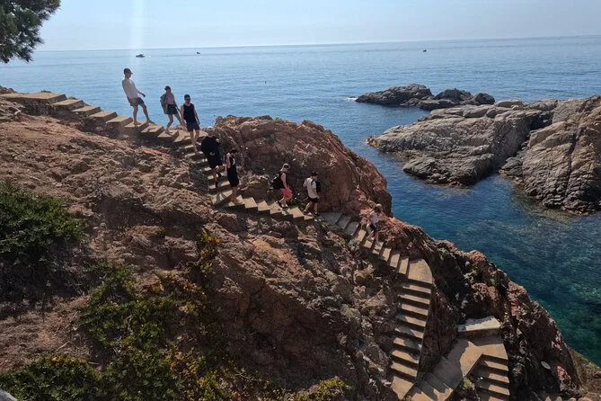 Votre journée comprend la prise en charge à Barcelone en van climatisé, des balades guidées le long du littoral du Camí de Ronda, l’utilisation du matériel de snorkeling pour nager ou sauter depuis les falaises quand le temps le permet, une assurance pendant toute l’aventure, et se termine par un partage de tapas traditionnelles ou un repas dans un restaurant local avant de rentrer, le sable plein les chaussures et le sourire aux lèvres.