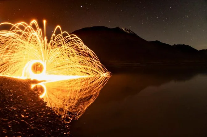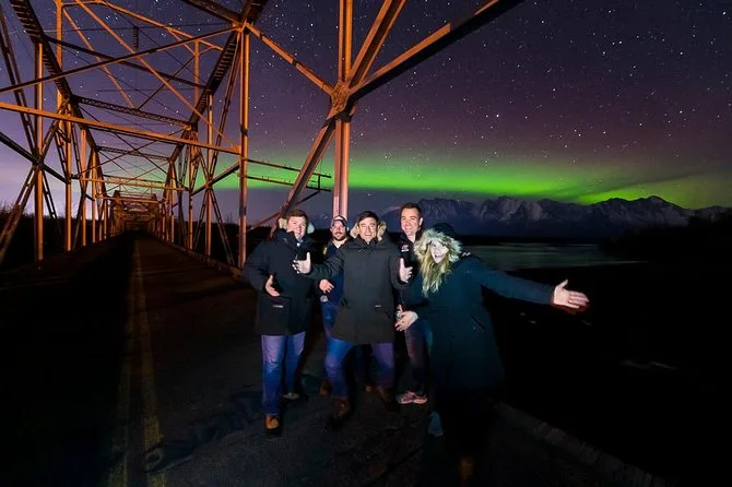 Votre soirée comprend la prise en charge à votre hôtel ou logement à Anchorage, les frais d’entrée pour les arrêts dans le parc d’État de Chugach, l’utilisation d’un trépied pour vos photos (même si vous n’en avez jamais utilisé), des couvertures chaudes pour lutter contre le froid, des snacks ainsi que du café ou du thé servis par votre guide — et si la chance est avec vous — un portrait pris sous les aurores boréales changeantes avant de reprendre la route vers les lumières de la ville.