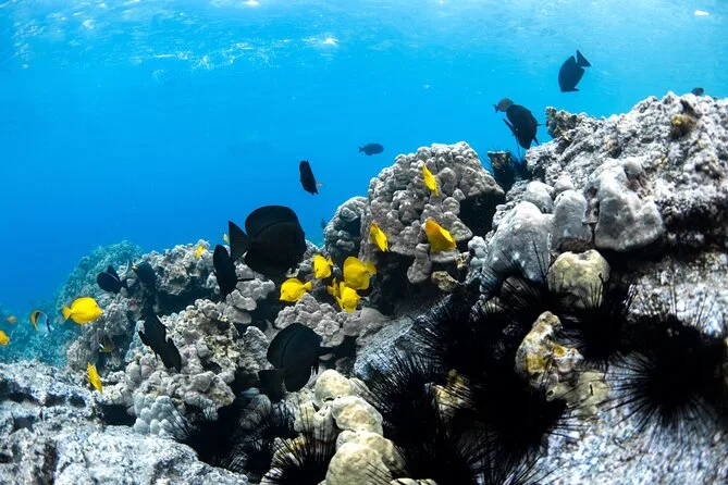 Vous pourrez apercevoir des dauphins à bosse hawaïens, des poissons jaunes tang, des oursins en forme de crayon, du corail chou-fleur et d’autres espèces de récif.