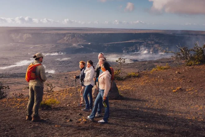 Un guide interprète certifié du parc national vous accompagne pendant la visite d’Hawaii Volcanoes National Park.