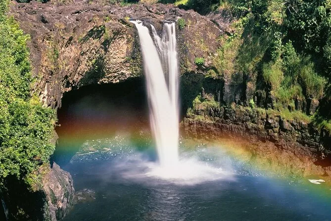 La visite dure toute la journée avec plusieurs arrêts, dont le parc national des volcans d’Hawaï, une ferme de cacao de 1 000 acres et Rainbow Falls près de Hilo.