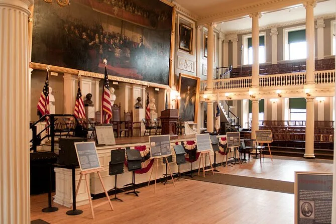 Votre journée comprend une visite guidée à pied de quatre heures couvrant chaque étape du Freedom Trail de Boston, de la Massachusetts State House au monument de Bunker Hill et à l’USS Constitution. Toutes les pauses toilettes sont prévues selon les besoins ; aucun pourboire n’est attendu ni accepté. Les animaux d’assistance sont les bienvenus et les transports en commun sont facilement accessibles si besoin.