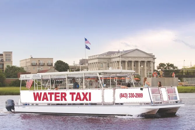 Profitez du vent marin de Charleston avec un water taxi flexible : montez et descendez à Patriots Point ou Waterfront Park, avec de nombreuses chances d’apercevoir des dauphins. Ambiance locale, vues à l’air libre, et petites surprises garanties.