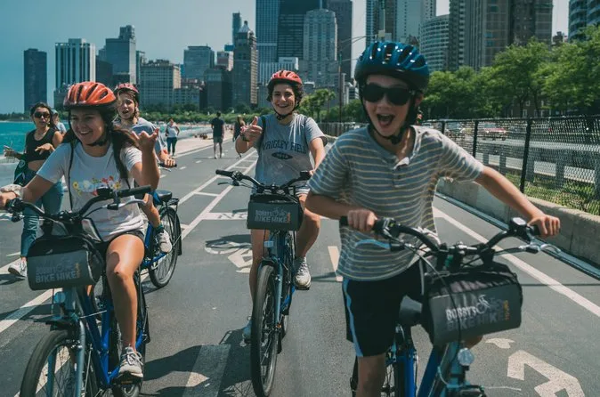 Votre journée comprend un guide local qui vous emmène à travers les quartiers du bord du lac à Chicago, avec vélos et casques fournis. Un espace de stockage est disponible pour les gros sacs, et des sièges enfants ou remorques sont proposés pour que toute la famille puisse participer — le tout à partir du 540 N. Lake Shore Drive, avant de s’élancer ensemble dans la brise de la ville.