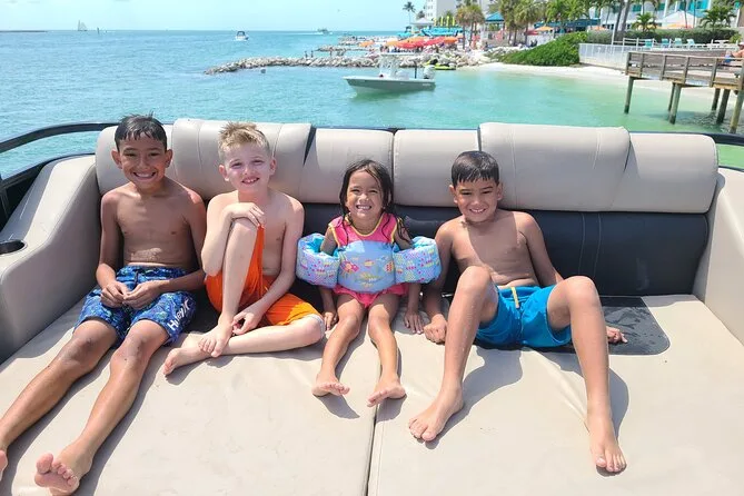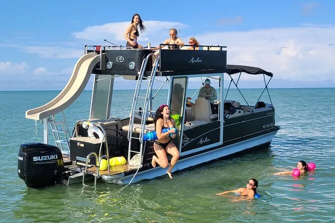 Votre journée comprend la prise en charge et le retour à un point de rendez-vous près de Clearwater Beach, un Funship privé à deux étages avec toboggan et capitaine local, le carburant inclus, de l’eau en bouteille dans une glacière remplie de glace, des flotteurs Big Joe pour se détendre dans l’eau, des sacs en filet pour la chasse aux coquillages sur Caladesi ou Honeymoon Islands, ainsi que tous les gilets de sauvetage et équipements de sécurité avant de revenir ensemble à terre.
