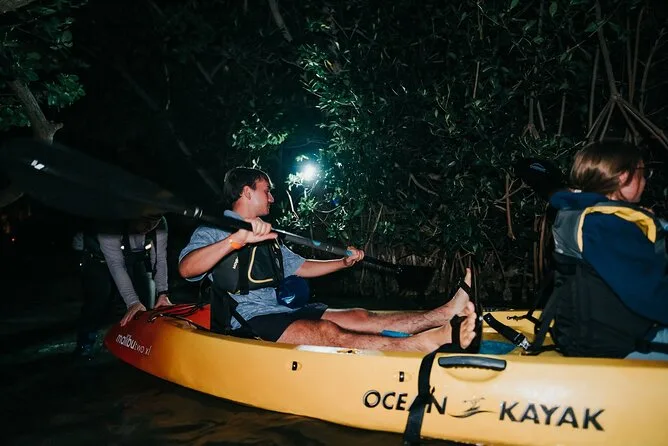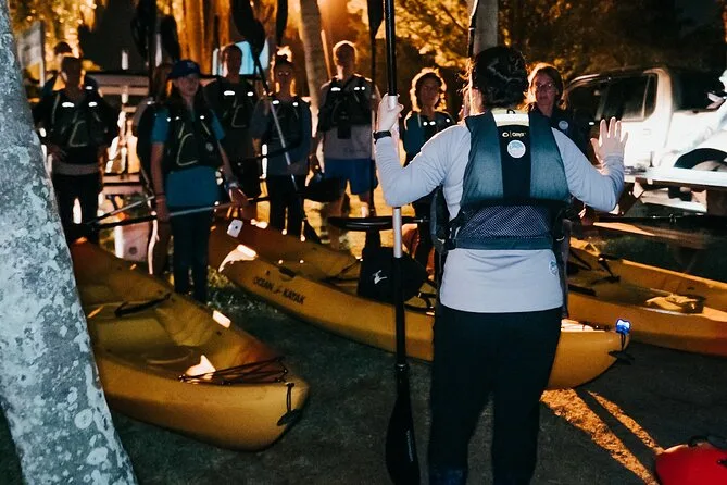 Votre soirée comprend l’utilisation d’un kayak (avec pagaie), un gilet de sauvetage pour chaque participant, ainsi que l’accompagnement d’un expert local qui connaît les meilleurs spots pour voir la bioluminescence—tout est prêt pour que vous puissiez simplement venir pagayer ensemble dans ces eaux lumineuses.