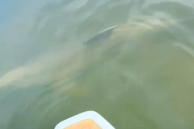 On a dérivé le long de mangroves enchevêtrées où Chris nous a montré une spatule rosée — franchement, je l’aurais ratée si on ne s’était pas arrêtés. Ses plumes roses semblaient presque irréelles au milieu de tout ce vert. Puis quelqu’un a chuchoté « dauphin ! » et juste devant nous, deux nageoires sont sorties de l’eau. C’était impressionnant de voir le silence s’installer un instant — juste le bruit des pagaies et ces petits souffles caractéristiques des dauphins. J’ai fait attention à ne pas bouger trop vite pour ne pas les effrayer.