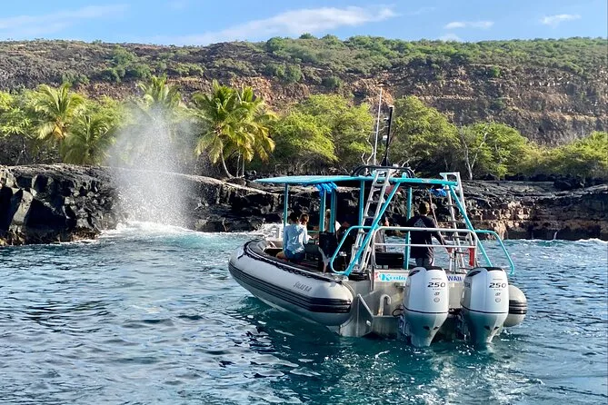 Vous naviguerez à l’ombre le long de la côte sud de Kona, ferez du snorkeling à Honaunau et Kealakekua, écouterez des légendes locales racontées par votre guide, et dégusterez des wraps frais et des fruits au déjeuner. Attendez-vous à une eau limpide, des poissons colorés juste sous vos yeux, et des instants de calme entre histoires et éclats de rire — un souvenir à garder précieusement.